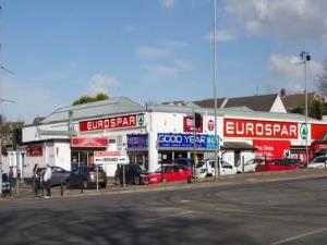 The proposal involves bulldozing the unit which spans from 1 Rossdowney Park and 10 Rossdowney Road, and the construction of a convenience shop, an off-licence and three hot food units at the site.