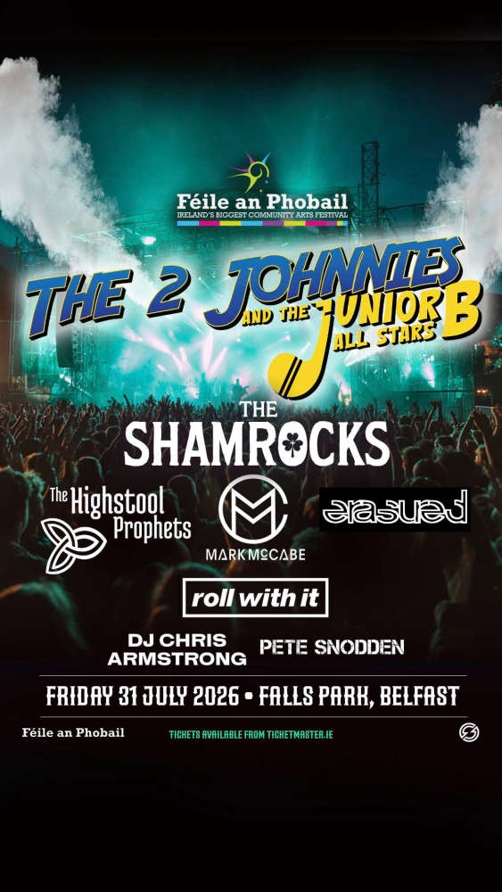 Coming off the back of their Farmer’s Bash headline show last year, Ireland’s favourite musical comedy duo, The 2 Johnnies are pleased to announce that they are headlining a Falls Park, Belfast show as part of the Féile an Phobail on Friday 31st July 2026, this marks their biggest ever NI show and will see a full line up of special guests on the day; The Shamrocks, The Highstool Prophets, Erasured, Mark McCabe, Roll With It, DJ Chris Armstrong and Pete Snodden.